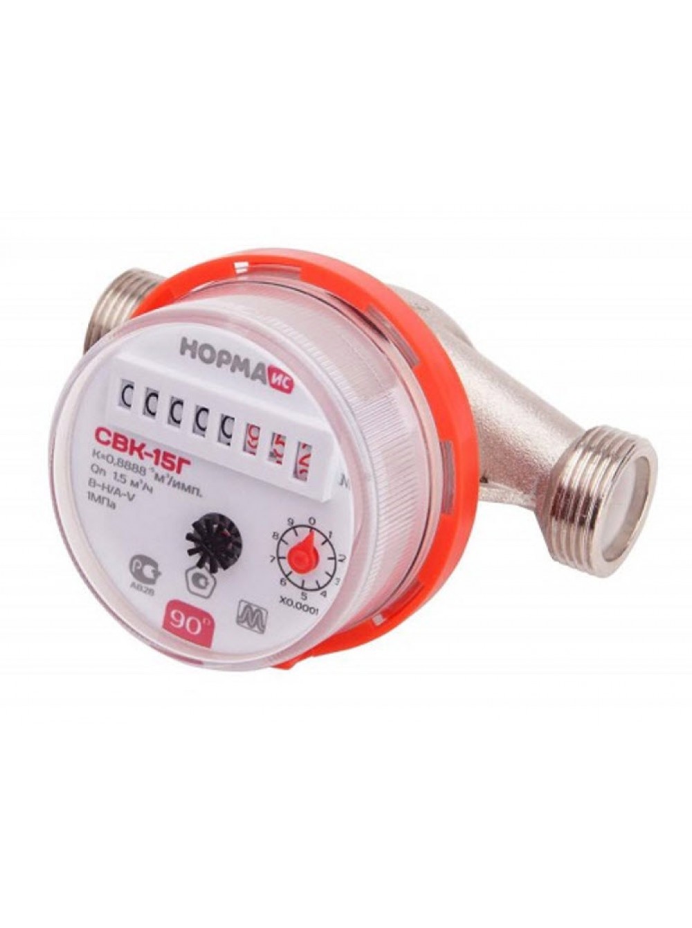 Бытовой счетчик воды НОРМА СВК-15 – предназначен для учета расхода как горячей, так и холодной воды.имеет шести летнею проверку, комплектуется обратным клапаном.